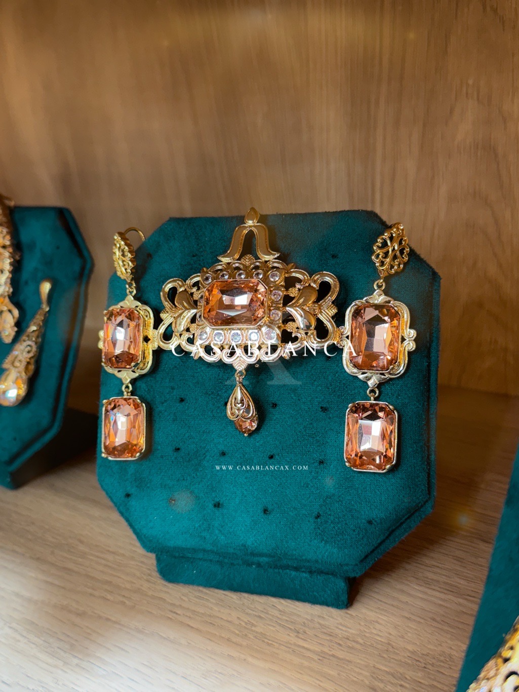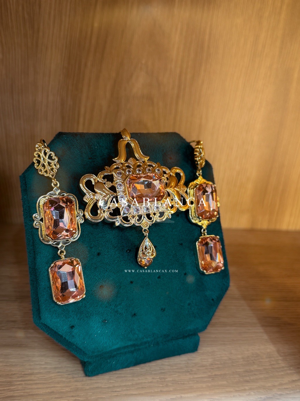 / Gouden Perzik Broche en Oorbellen Set – Olyra