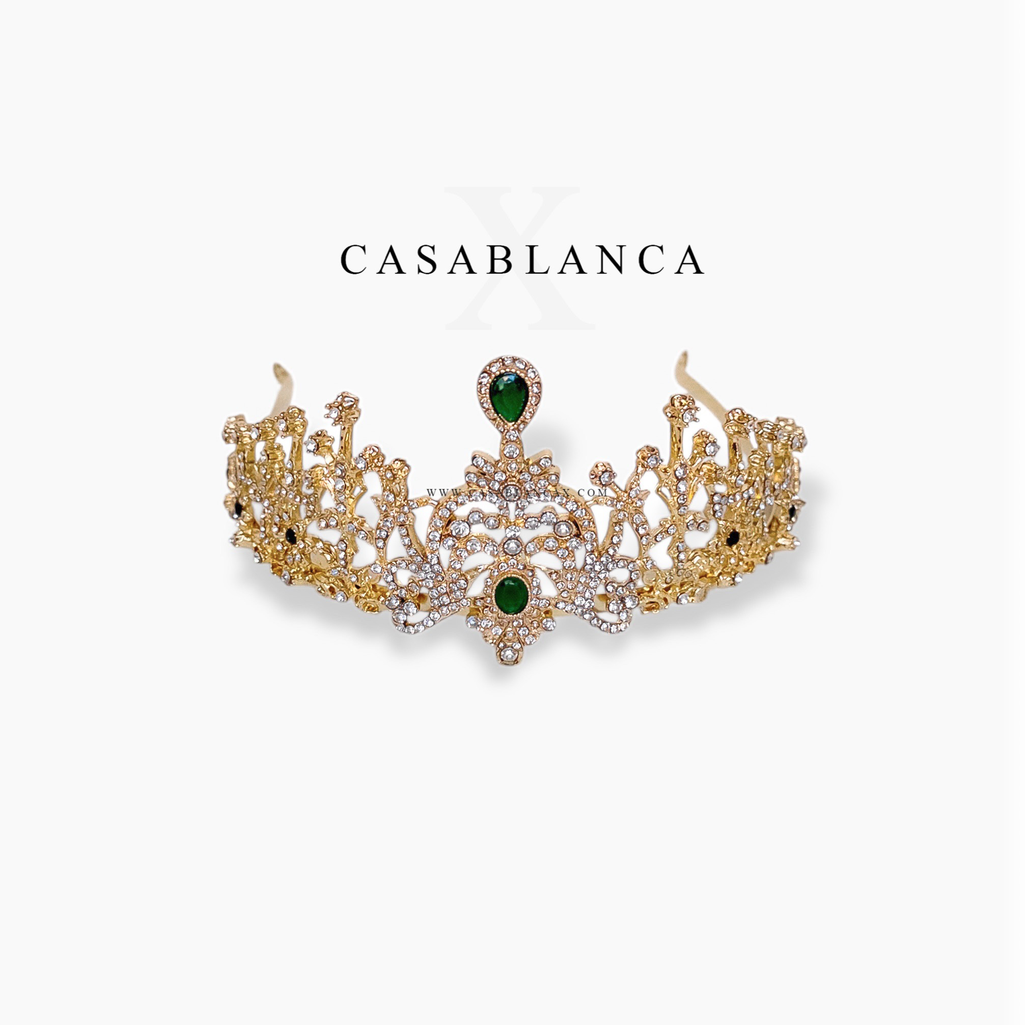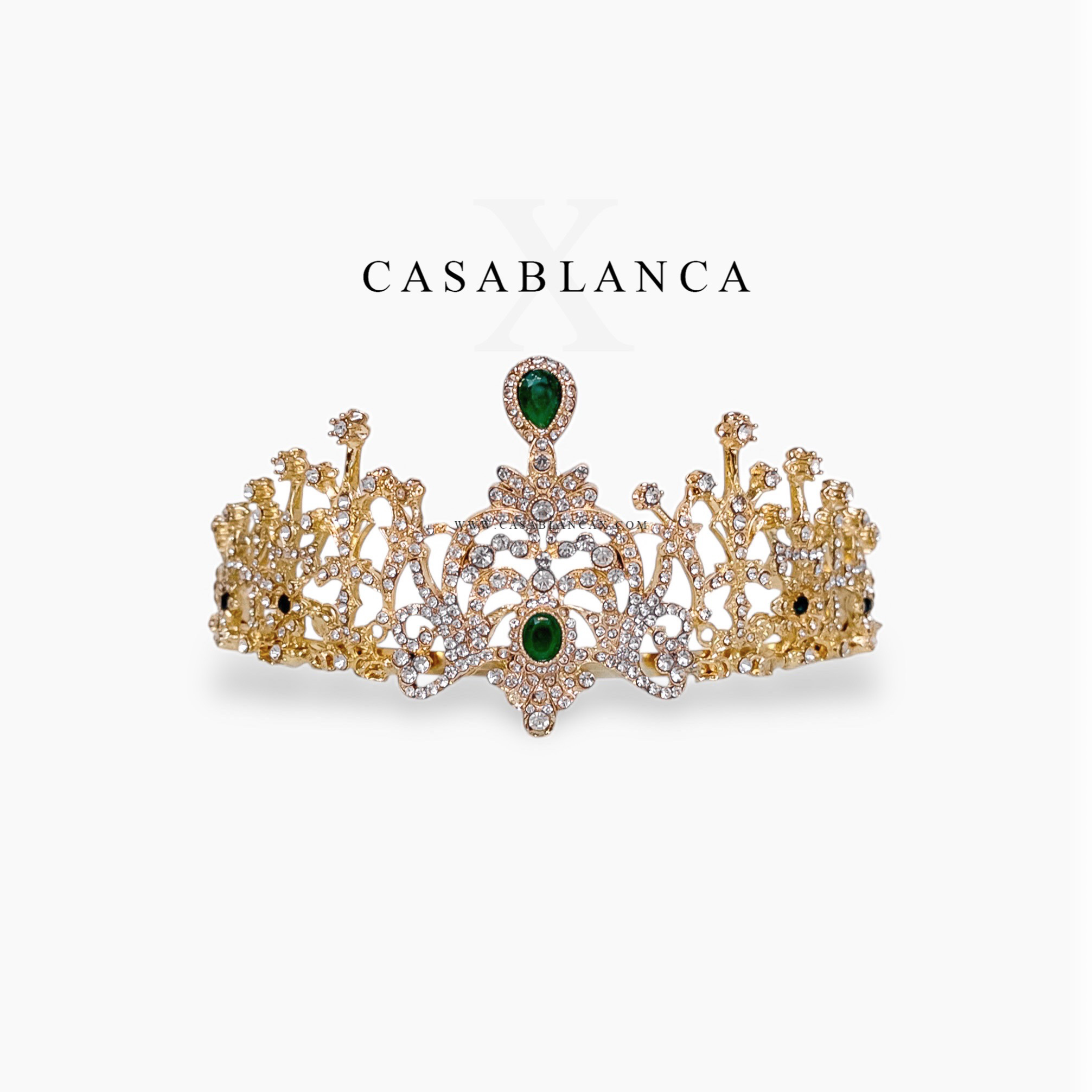 Tiara Corona Dorata Con Pietre Verdi - Siray quantità